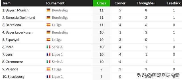 但是,多特蒙德球员通过传中,制造了11次直接助攻,这一点,多特与拜仁、巴萨一起,是五大联赛并列第一。